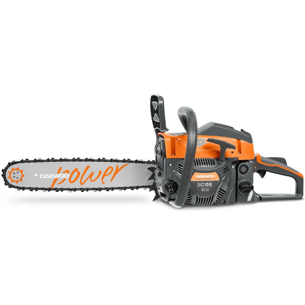 Бензиновая пила DAEWOO DACS4516 оснащена двухтактным двигателем 045 two stroke. Используется для распила деревьев, обрезания веток. Для доступа к воздушному фильтру не требуются дополнительные инструменты. Антивибрационная система способствует снижению нагрузки на кисти рук при длительном использовании. Инерционный тормоз цепи при необходимости остановит ее за несколько десятых секунды, специальный контактный защитный щиток срабатывает при непроизвольном касании рукой - все это обеспечивает защиту оператора. Модель поставляется в сумке, что решает вопрос хранения и транспортировки.