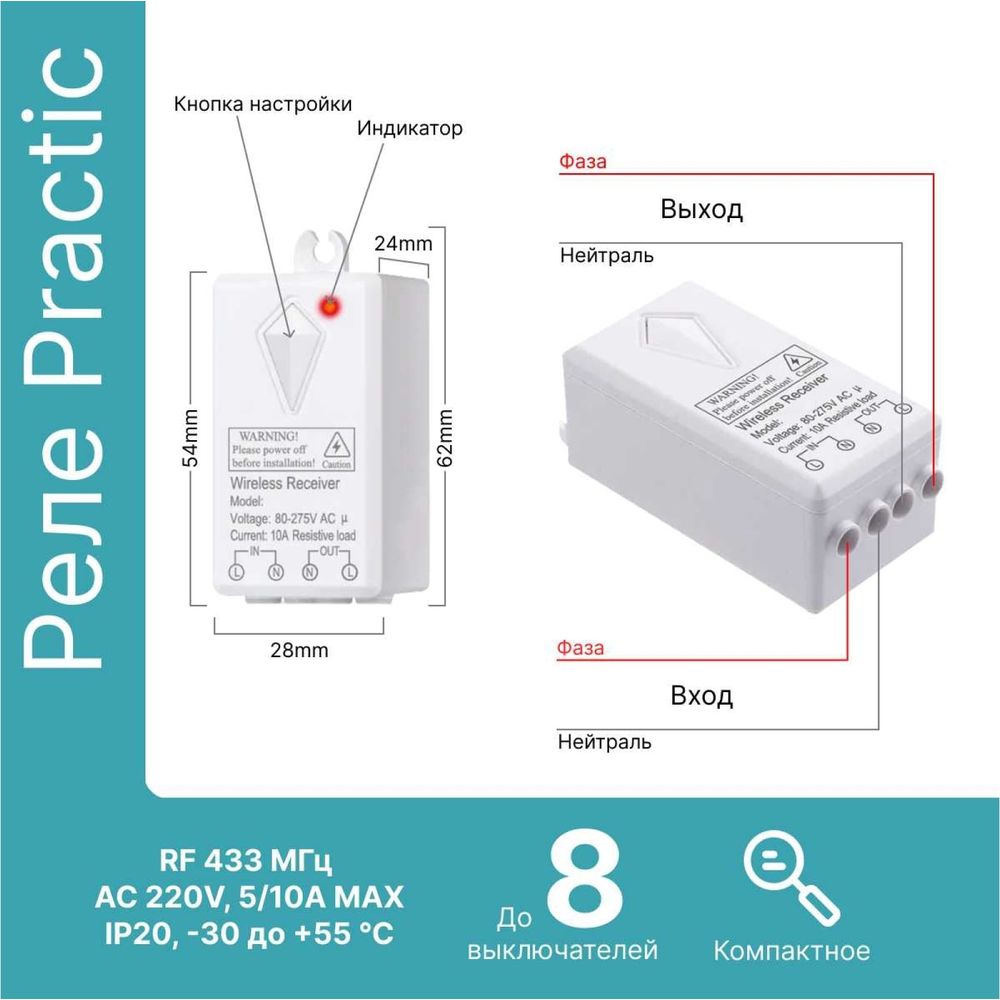 - С помощью дополнительных выключателей или пультов позволяет организовать до 8 точек включения (проходных выключателей)