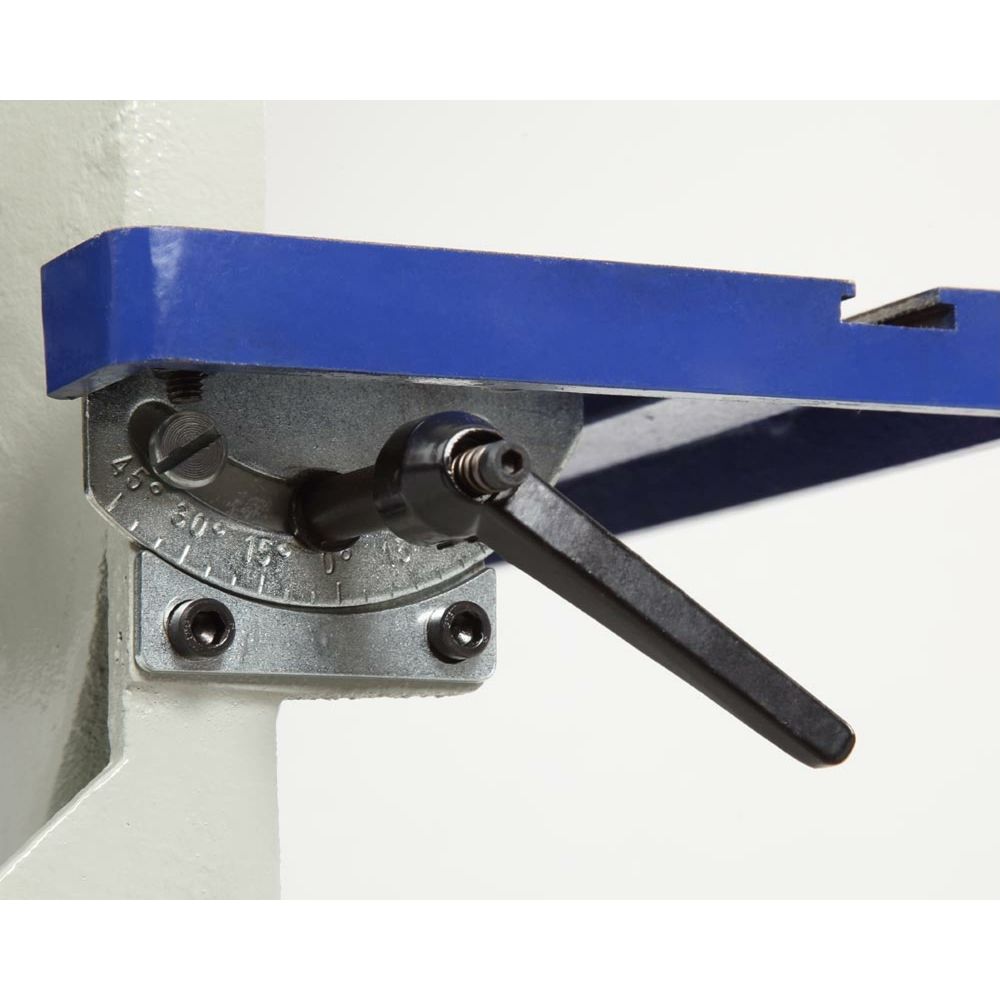 Опорные ножки с резиновыми накладками обеспечивают устойчивое положение станка на поверхности во время работы. Асинхронный двигатель способствует эффективной и бесперебойной работе машины. Корпус станка покрыт порошковой краской для защиты от коррозии.