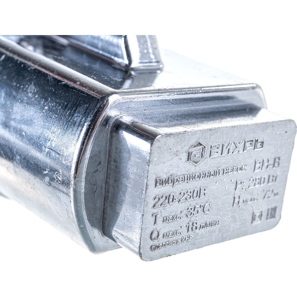 Конструкция устройства предельно проста. В ней нет электрического двигателя, который требует большого количества энергии. Это позволяет существенно снизить затраты на электричество и отказаться от технического обслуживания агрегата, который в нем не нуждается. Вибрационный насос может качать воду со скоростью 18 л/мин. Его можно погрузить в колодец, скважину, резервуар на глубину до 3 м, при этом мощности в 280 Вт будет достаточно для подъема жидкости на высоту до 72 м. Данная модель также подходит для обустройства горизонтального водопровода, она обеспечит достаточный напор даже при удаленном расположении источника (более 100 м). Устройство оснащено 10-метровым электрокабелем и тросом, который облегчает перемещение и подвешивание корпуса в скважине, водоеме. Корпус выполнен из алюминия, вес оборудования составляет 3,26 кг.